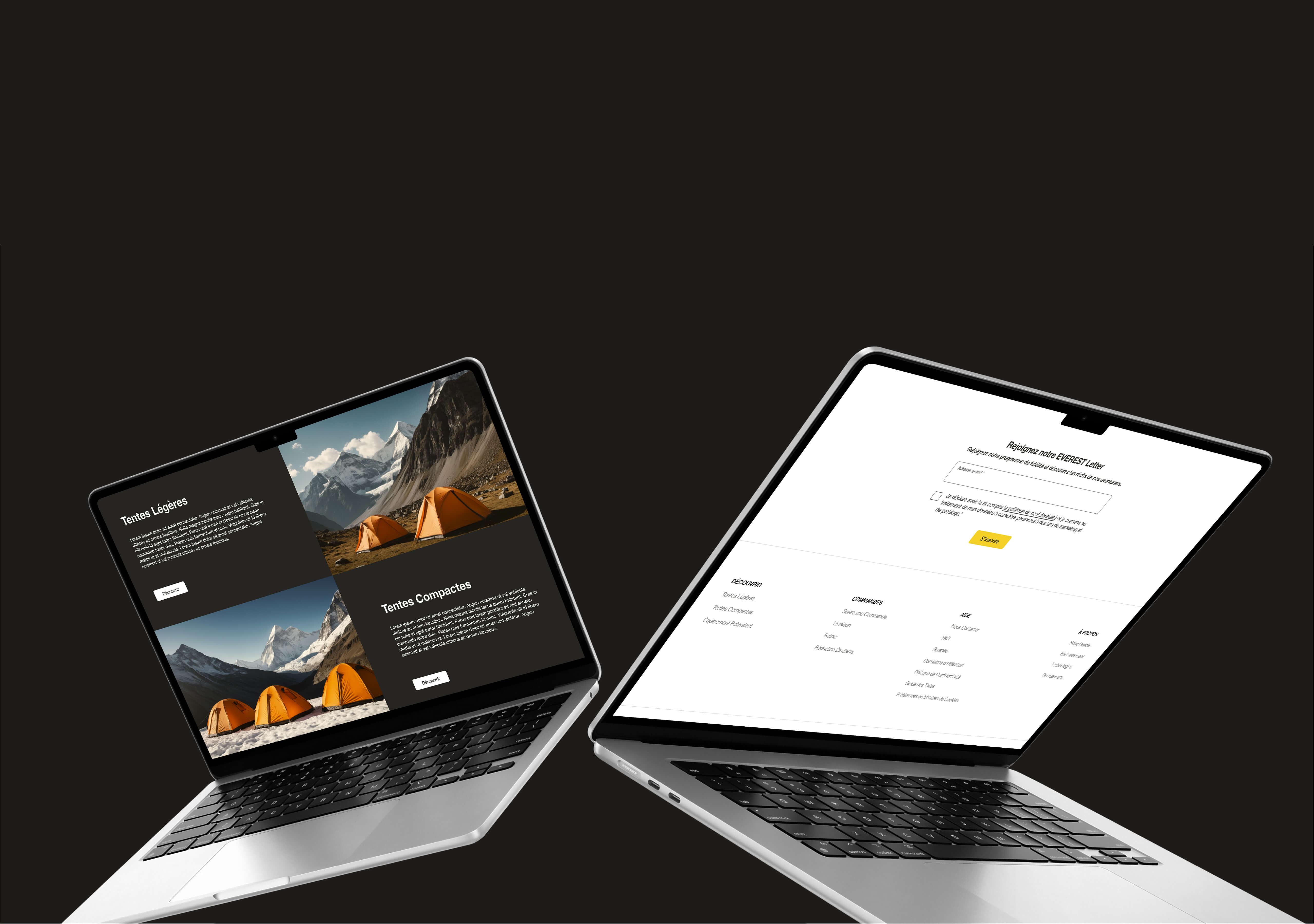 Concevoir la page d’accueil et l’identité visuelle d’une marque fictive de tentes pour sports extrêmes "Everest Shelter ", en lui donnant l’aura d’une marque historique et prestigieuse, tout en garantissant un parcours utilisateur fluide et orienté conversion.